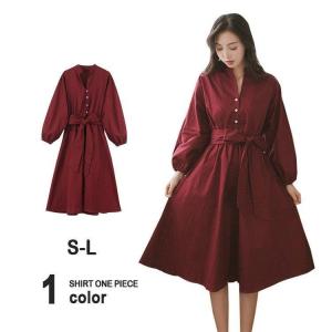 レトロ シャツワンピース ロング丈 マキシワンピース レディース 春 秋 冬 サファリ 赤 ワイン 長袖 フレアスカート 無地 ロングワンピーの通販はau Pay マーケット Solare Shop